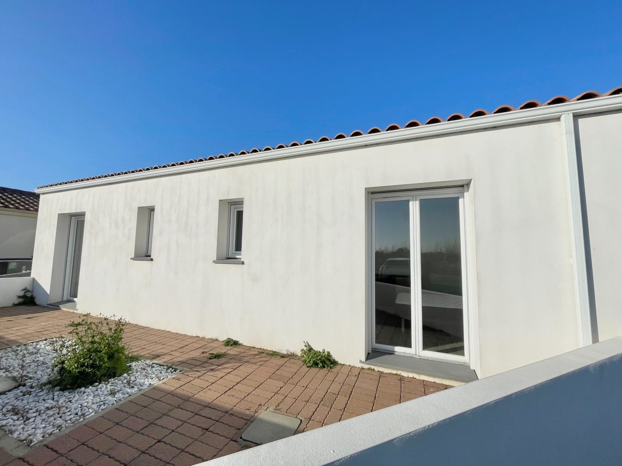 A proximité du village typique de la Gachère, des plages, de la forêt et environ 1300m du centre ville, dans un quartier résidentiel calme et récent, sur un terrain de 232m² cette jolie maison édifiée en 2017 d’environ 85m² habitables vous propose une entrée directe dans séjour salon avec cuisine ouverte aménagée et équipée, dégagement, trois chambres dont deux avec placard, une salle d’eau, toilettes, cellier. Parking. Abri de jardin. Très bon état général.