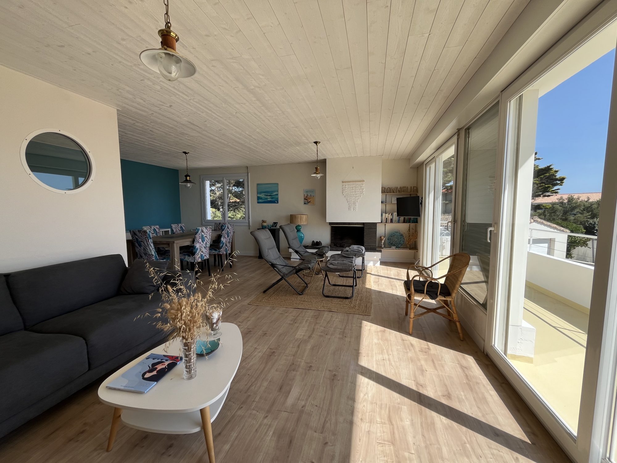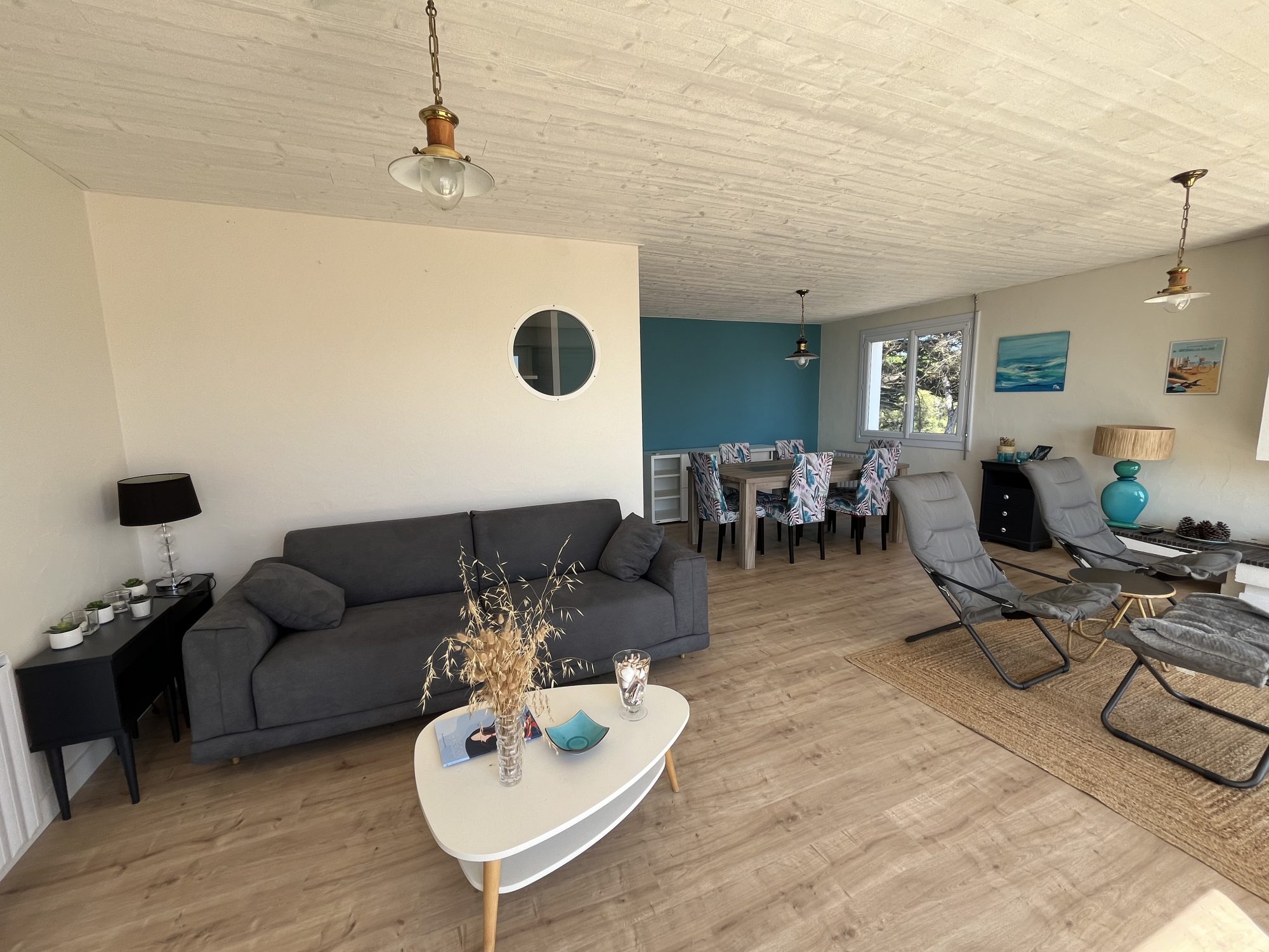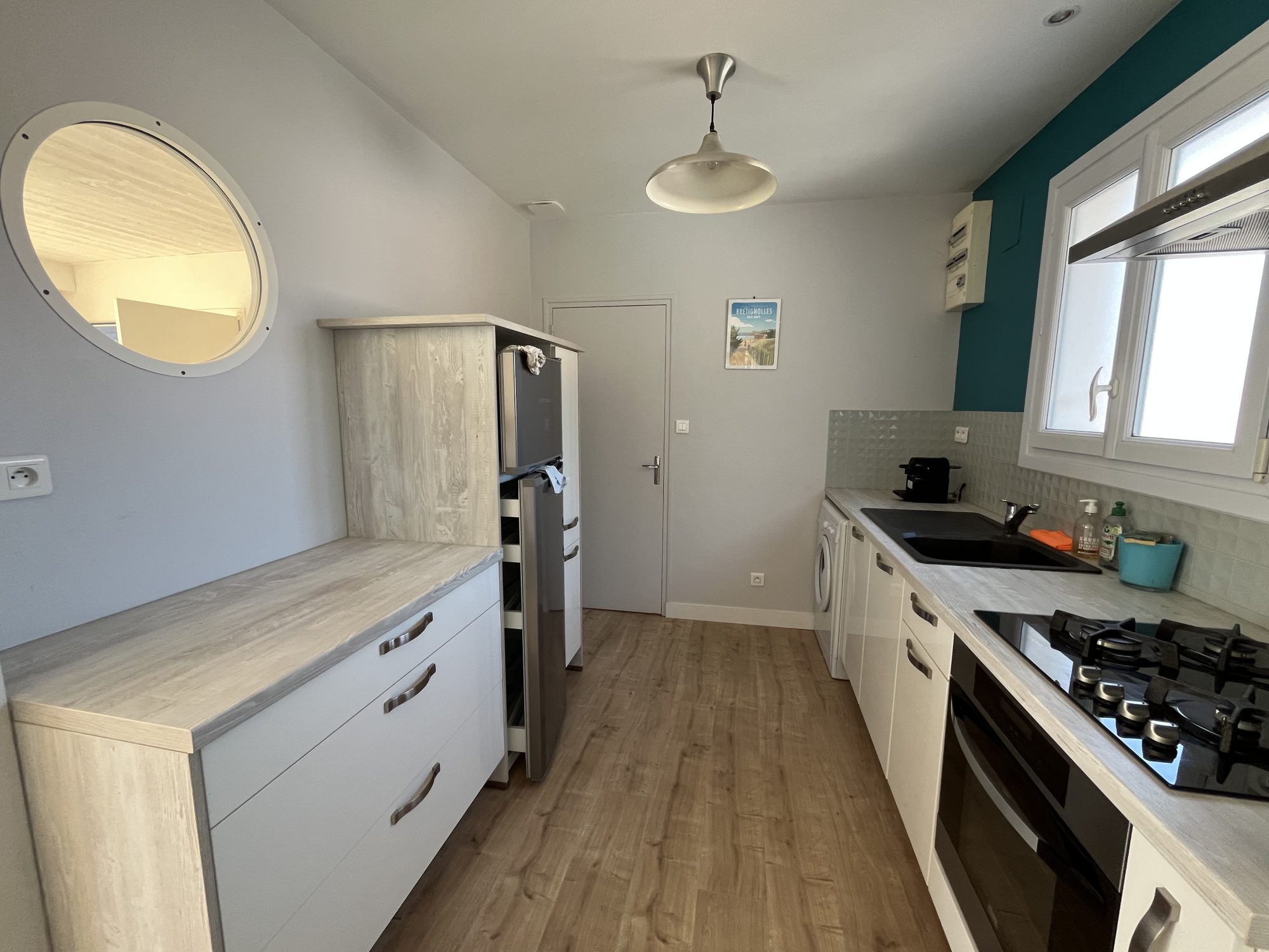 Appartement à l’année, meublé avec vue mer comprenant une agréable pièce de vie avec un coin cuisine aménagée et équipée(plaque gaz, four, réfrigérateur avec partie congélateur et lave-linge).