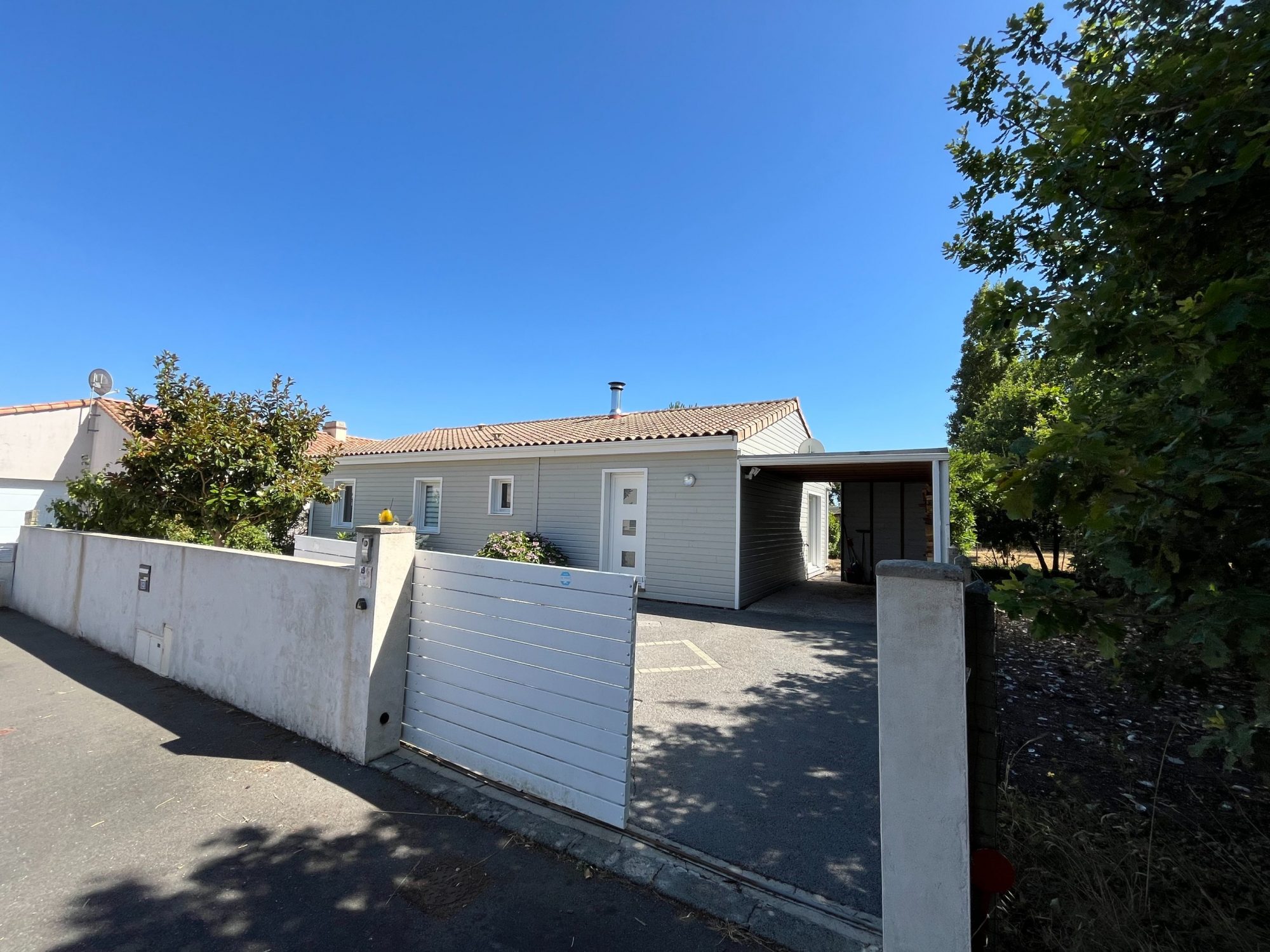 Sous compromis : A saisir : Dans une impasse Calme, proche du centre-ville, à 1500 m de la Mer et Plage de Brétignolles sur mer, sur un terrain clos de 405 m², est édifiée une maison de 2012 BBC à ossature Bois, d’environ 90 m² Habitables comprenant: hall d’entrée avec placard, un cellier, un Salon/Séjour/Cuisine aménagée équipée, dégagement, WC, salle d’eau et trois chambres avec placard. En extérieur le jardin est aménagé, paysager, arboré, avec Carport, terrasse bois sous porche et cabanon. Idéal pour une maison de famille.