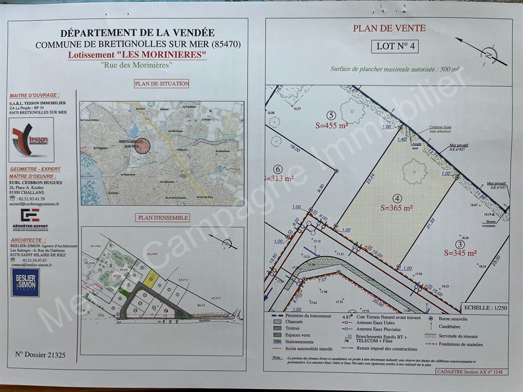 Entre mer et centre ville de Brétignolles S/Mer, quartier prisé, Terrain à Bâtir, viabilisé de 365m².