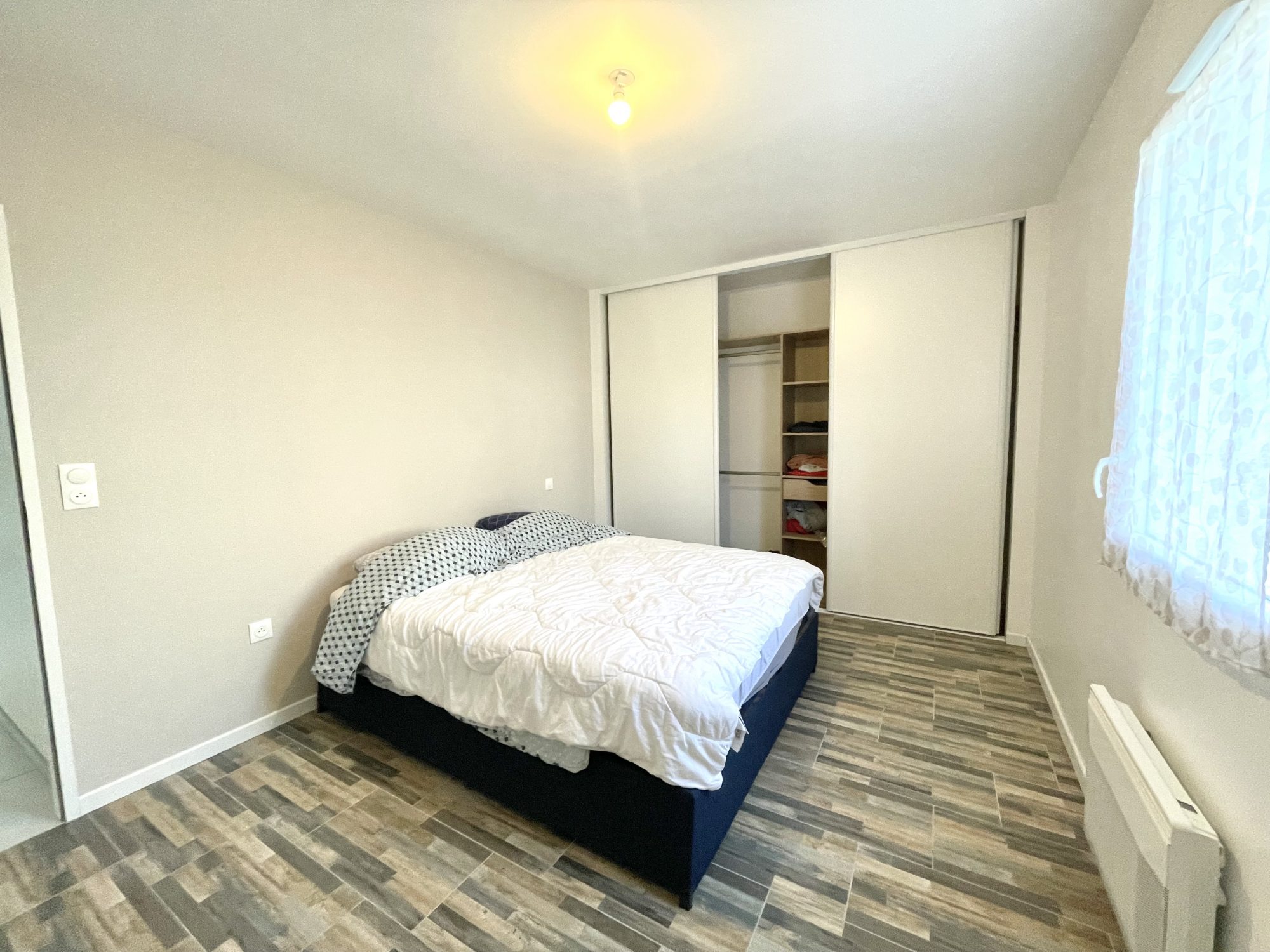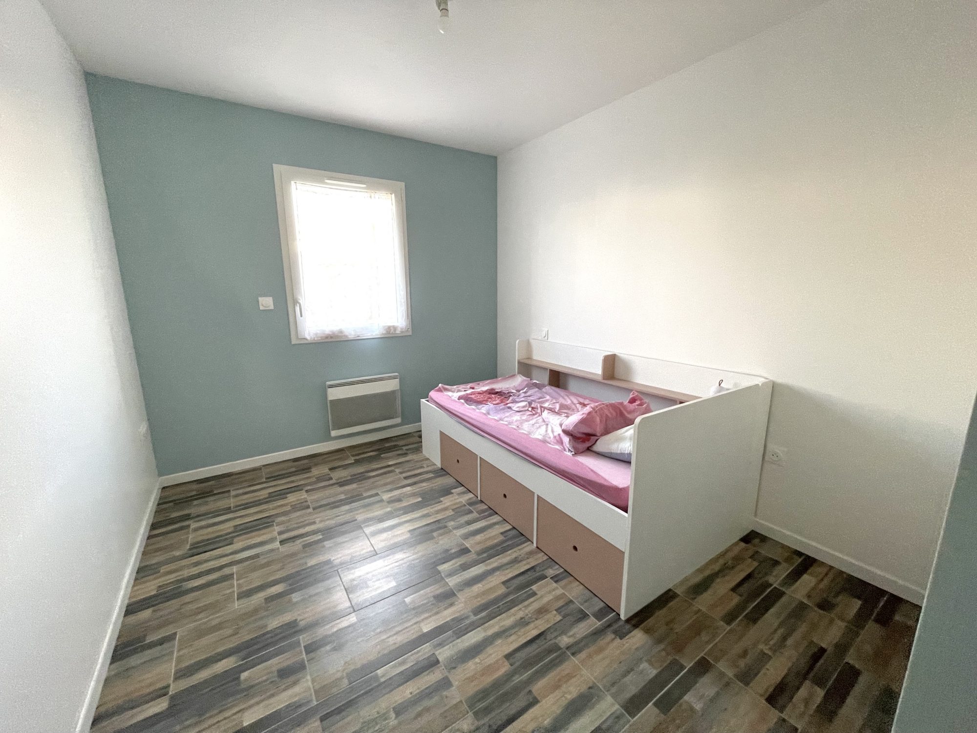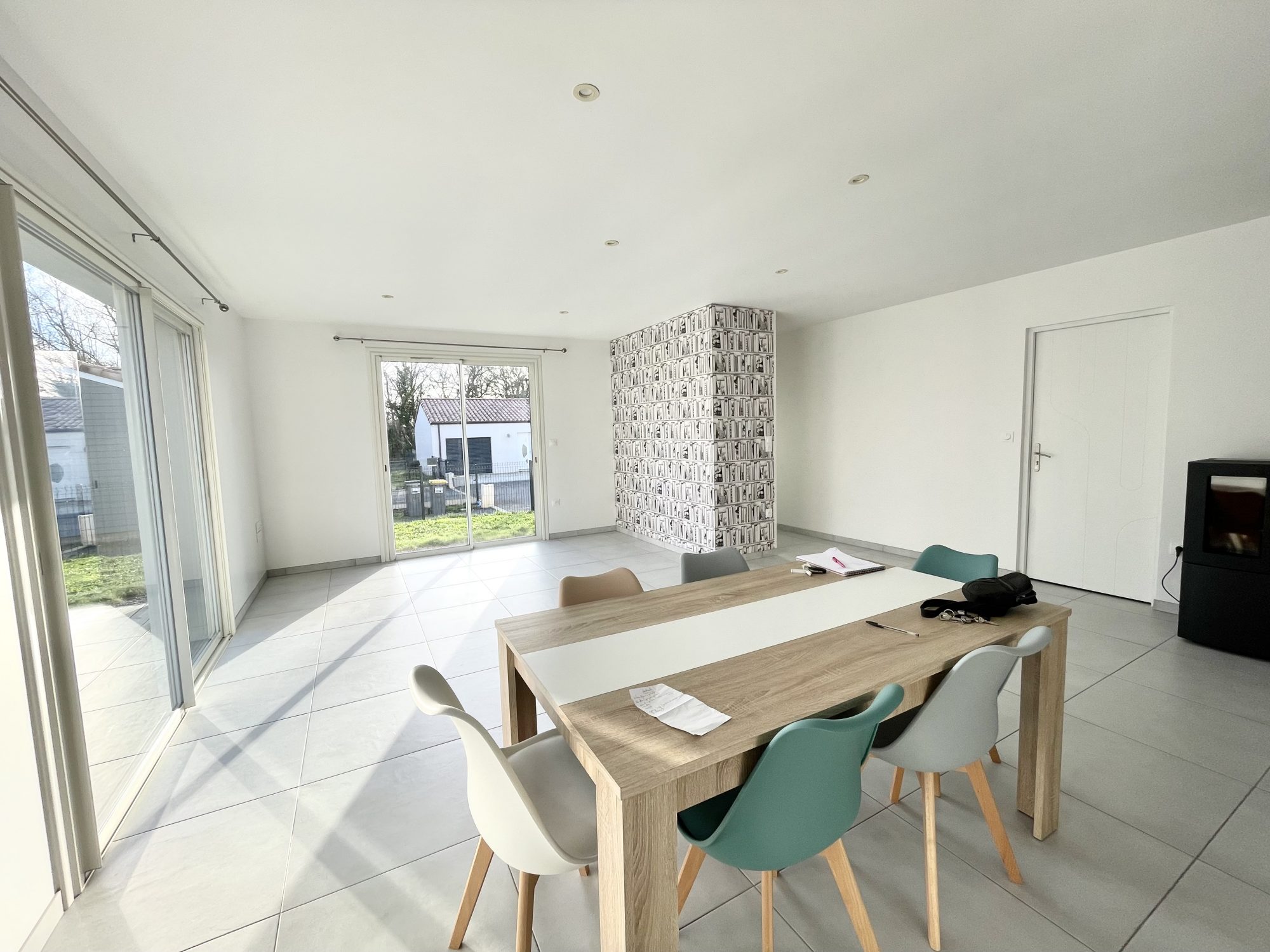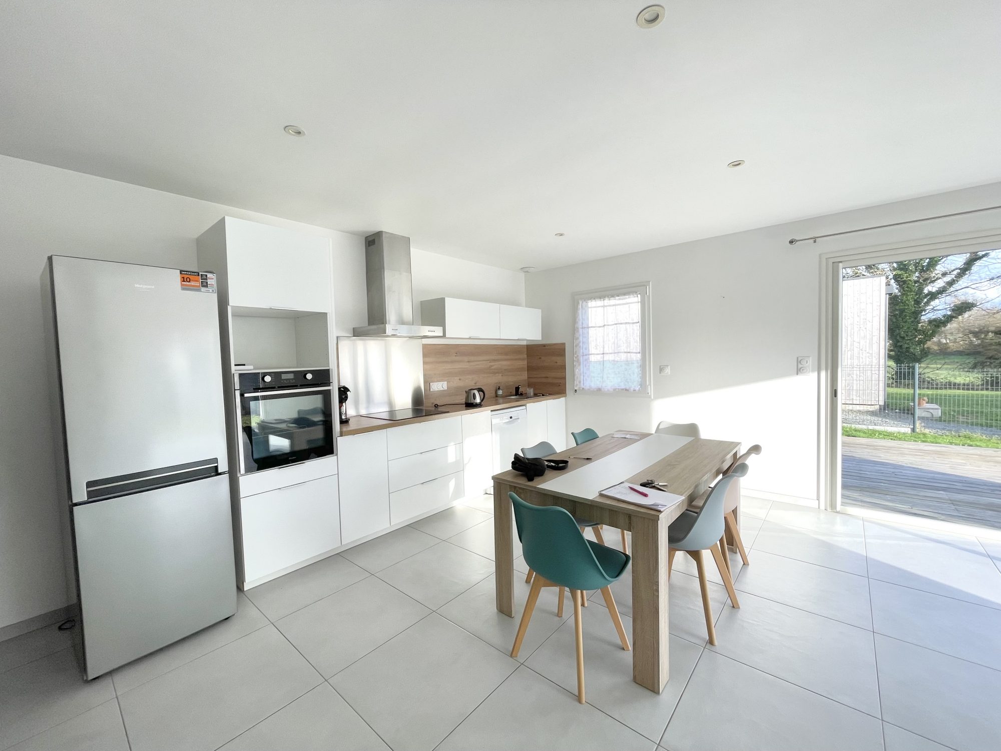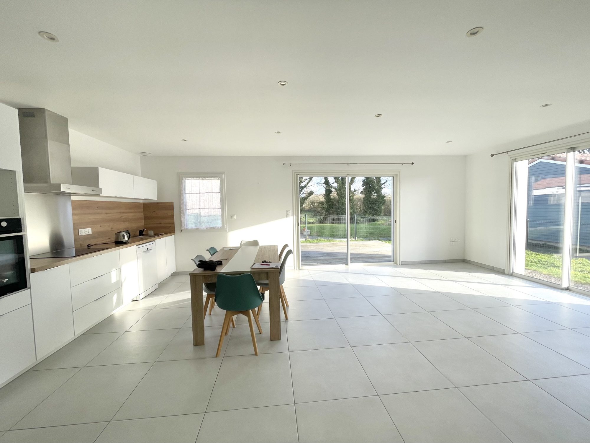 Maison récente de 87 m² située dans un quartier calme de la commune de Landevieille comprenant une entrée avec placard aménagé, une belle pièce de vie avec une cuisine aménagée et équipée (plaque induction et hotte).