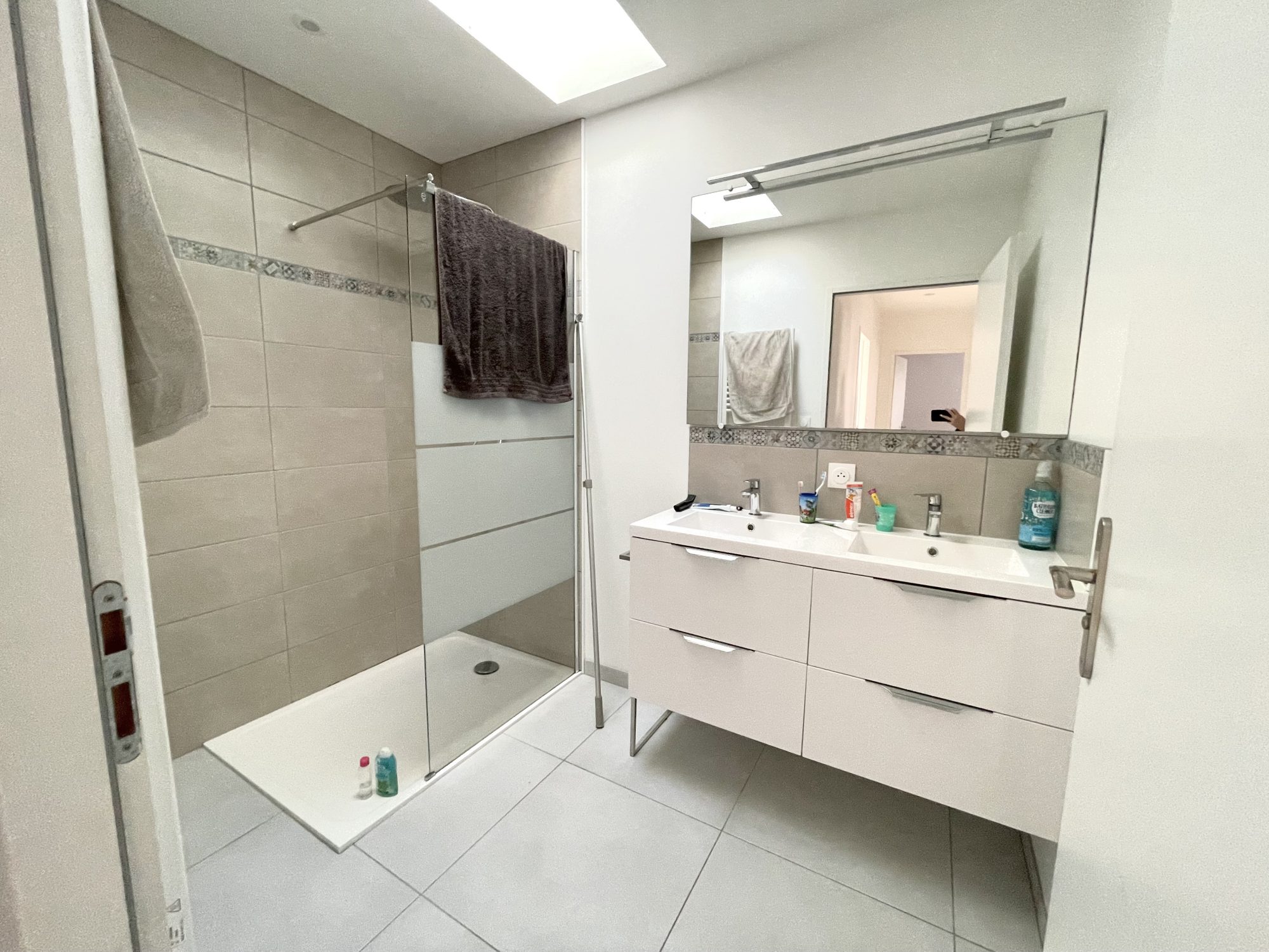 Un garage attenant à la maison (branchement lave-linge).