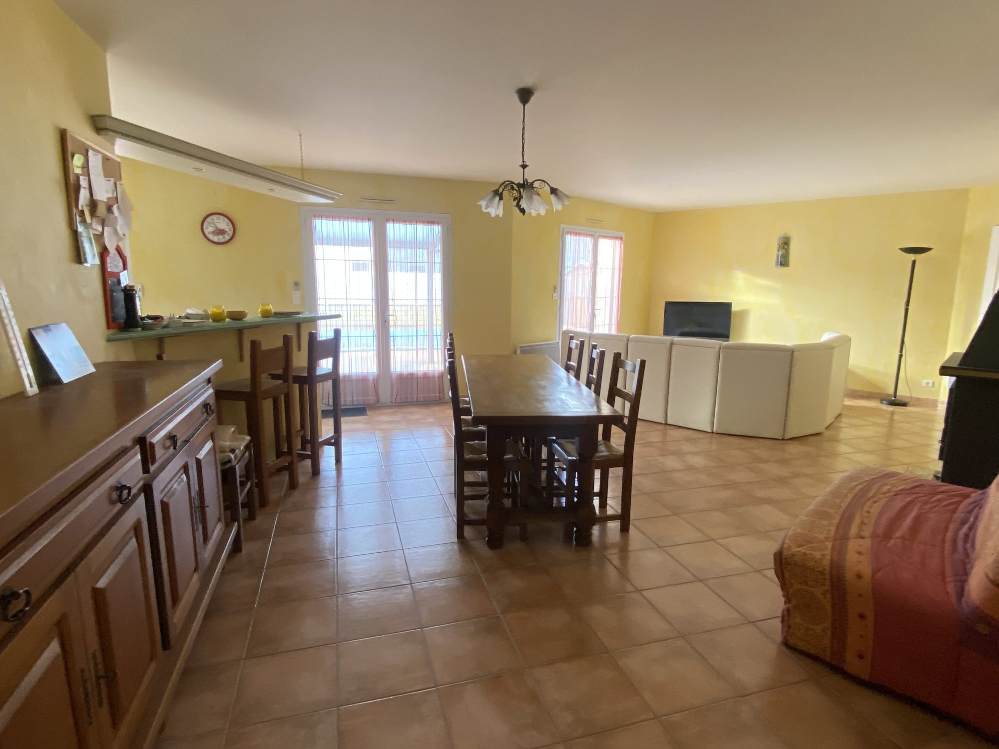 Dans un quartier calme et agréable à 500m des commerces, cette belle maison de plain-pied d’une surface d’env 120m² habitable est composée d’un hall d’entrée, une belle pièce de vie avec cuisine ouverte aménagée et équipée exposée sud, 3 chambres dont une avec salle d’eau, une seconde salle d’eau, un cellier, un garage double de 35m². Terrain entièrement clos et aménagé de 617m² avec piscine chauffée, terrasse, pergola, espace barbecue, emplacement parking…