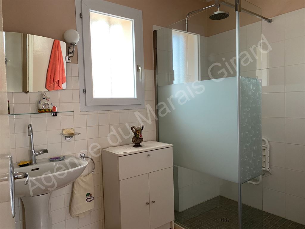 L’Agence du Marais Girard vous propose ce joli pavillon T3 idéalement situé à quelques pas des Halles, dans un quartier pavillonnaire recherché : séjour Ouest, cuisine, deux chambres, salle d’eau, wc, grand garage attenant avec grenier, buanderie, douche, wc. Jardin bien clos de 496 m² agrémenté d’un atelier, un verger et 2 terrasses. La construction de facture locale traditionnelle date de 1988. On apprécie son bon état, ses 4 faces libres, la proximité des commerces et services du centre-ville (200 m) et la plage à pied (1300 m).