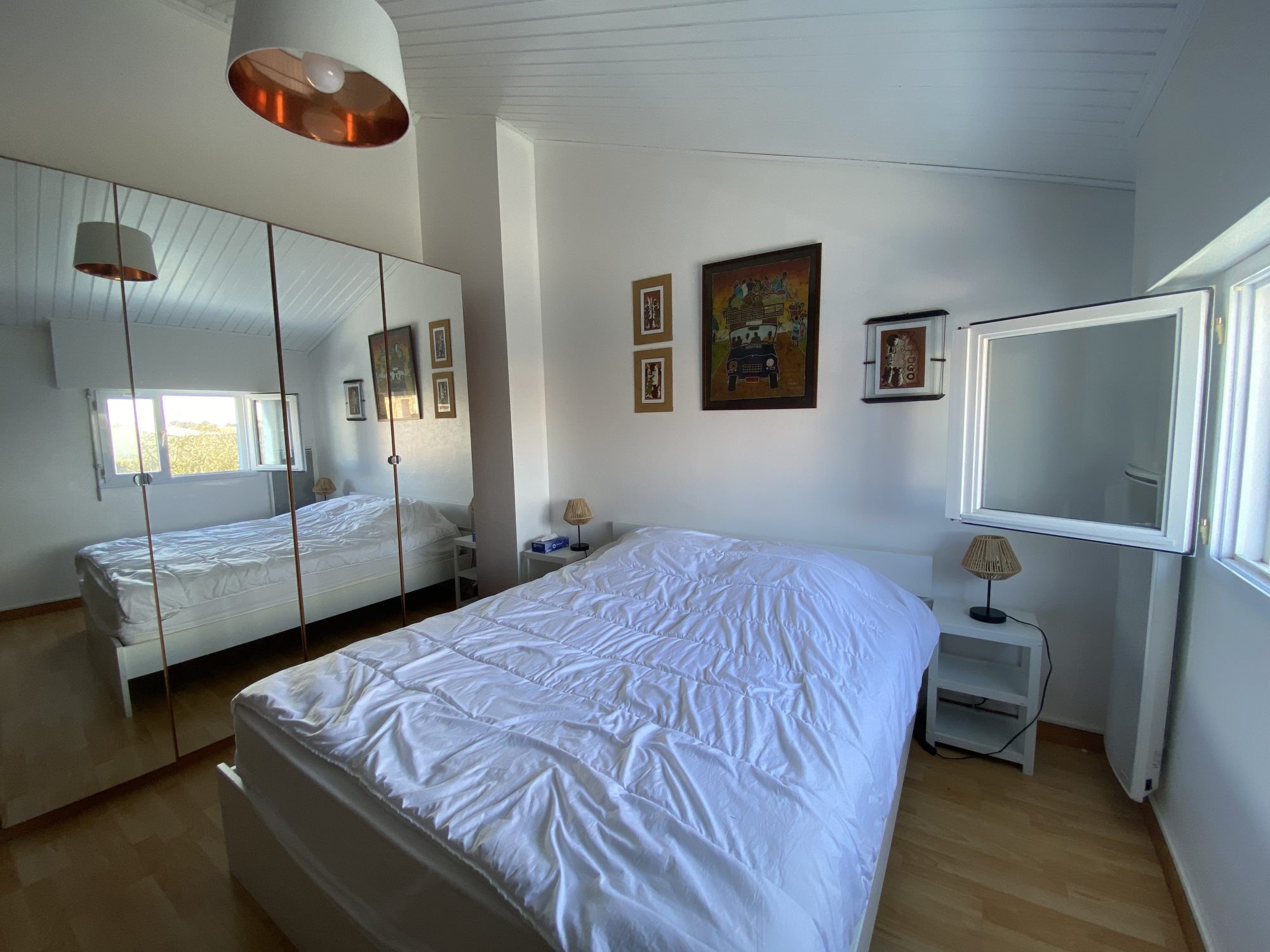 Périphérie centre-ville, à environ 1500m de toutes commodités et des écoles, sur un terrain de 480m² environ est édifiée maison d’habitation de facture locale comprenant au rez-de-chaussée, une entrée, un séjour salon avec cuisine ouverte aménagée et équipée, une chambre avec espace lavabo, w.-c. , cellier, garage. A l’étage, deux chambres, une salle de bains avec w.-c. Terrasse. Bon état général.