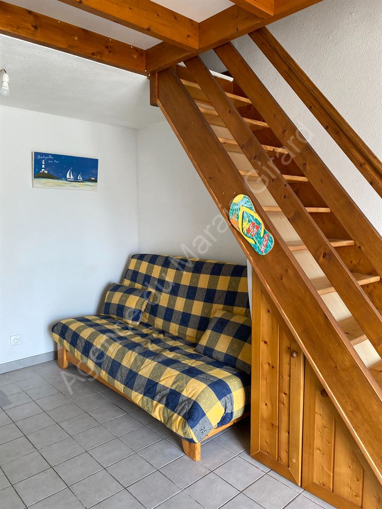 EXCLUSIVITE Brétignolles sur Mer, Plage du Marais Girard, votre pied-à-terre facile à vivre, petite maison bien organisée en duplex 28 m² (18,05m² Carrez) : pièce de vie avec cuisine aménagée et équipée récente, salle d’eau/wc et grande mezzanine semi-fermée avec placard. Le séjour ouvre sur un patio clos avec rangement vélo. Stationnement possible devant la maison. Quelques commerces proches, centre-ville à 1100 m.