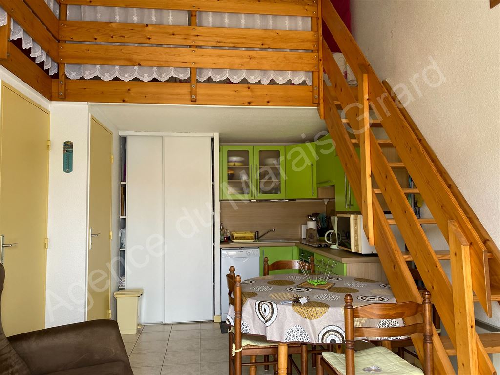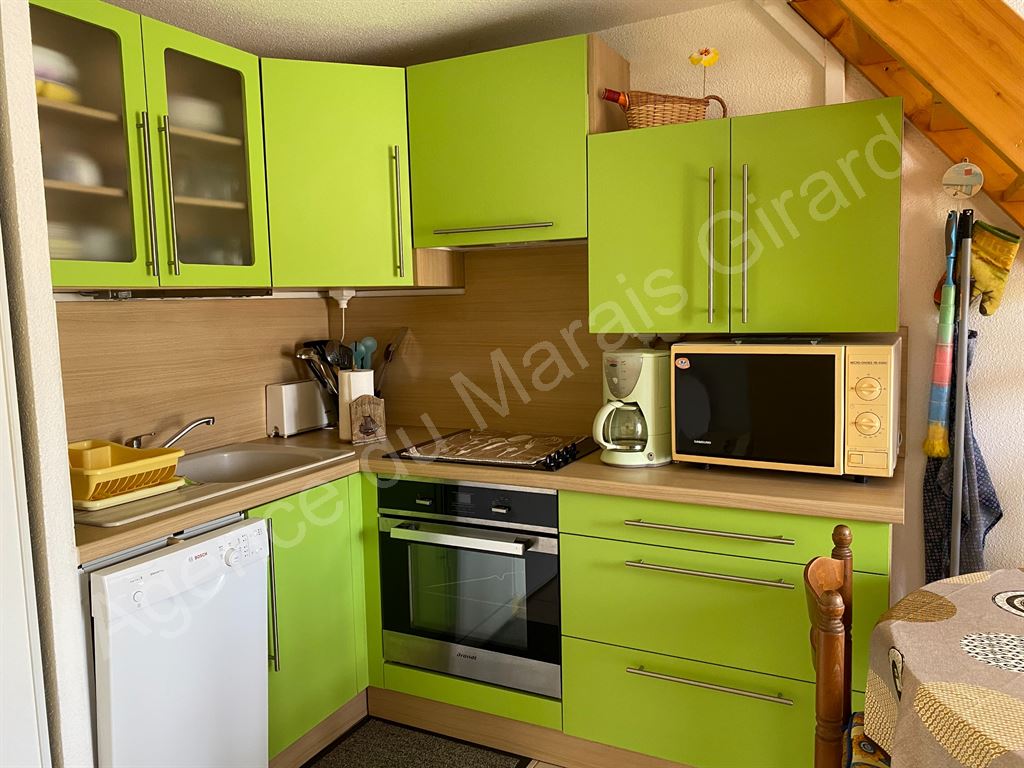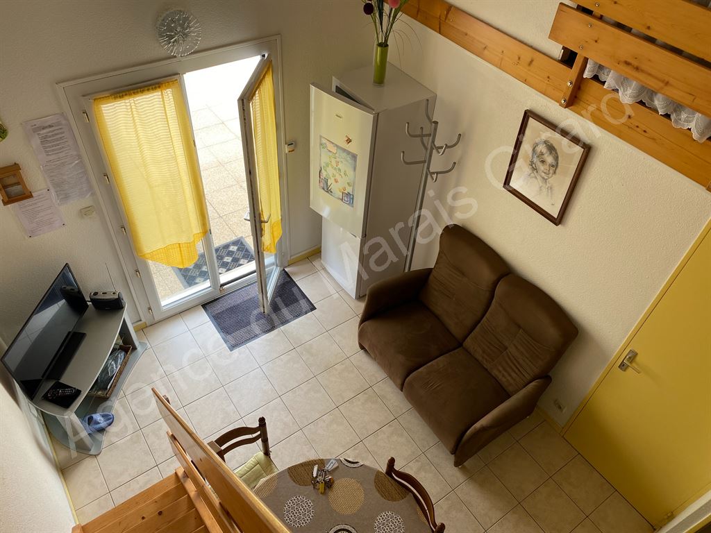 L’agence du Marais Girard vous propose un pied-à-terre au bord de mer à Brétignolles sur mer. Dans une résidence avec accès direct aux plages, maison de vacances de 35 m² (Carrez : 23,57 m²) pouvant accueillir 4 à 6 personnes : séjour/cuisine ouvrant sur cour fermée, chambre, mezzanine, salle d’eau, wc. Propre et bien tenue, elle est parfaite pour des séjours tranquilles. Armoire de rangement extérieure. Local vélos collectif. Stationnement sur parkings à proximité immédiate de la résidence. Commerces accessibles à pied.